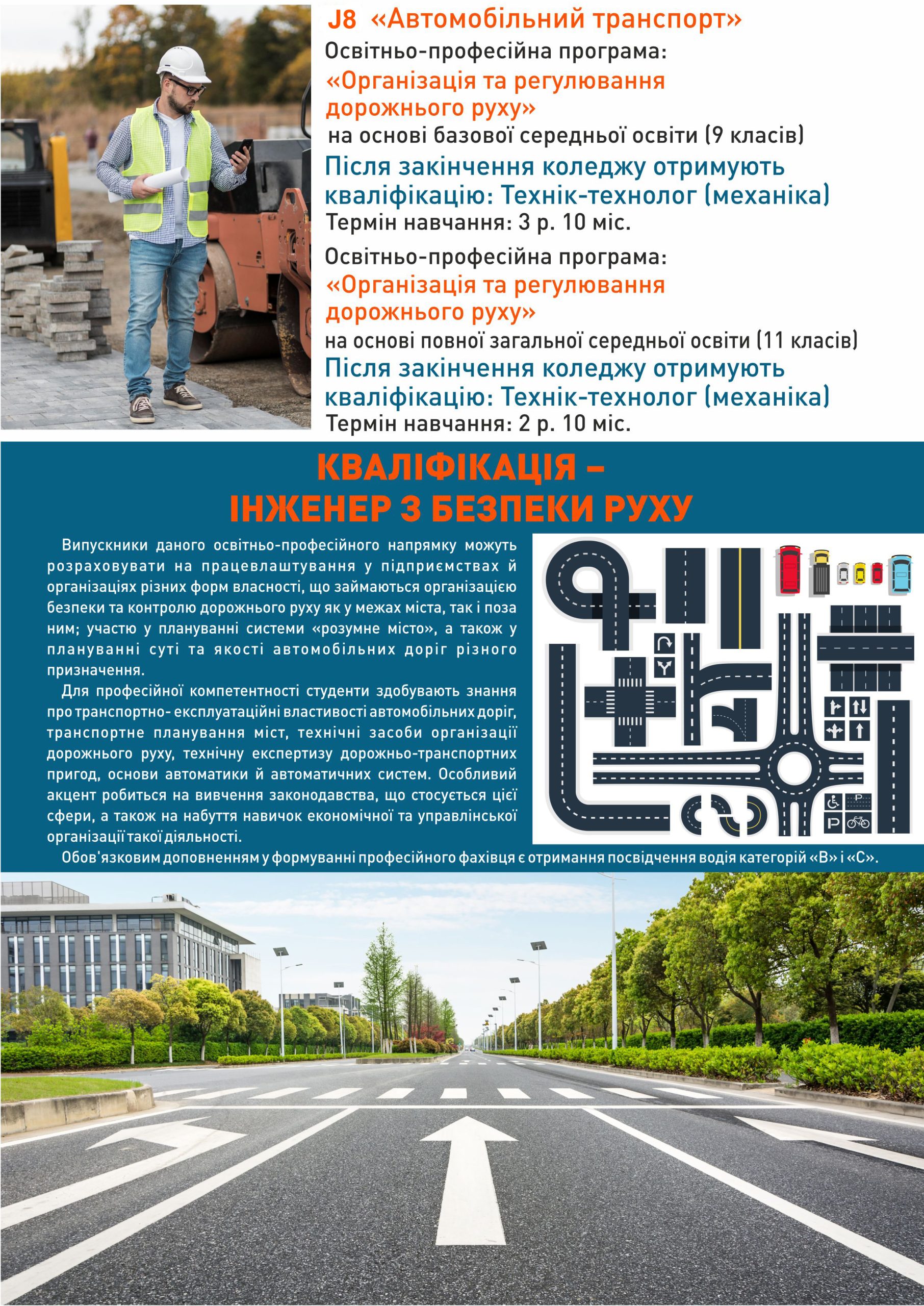 Організація та регулювання дорожнього руху;